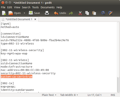 cd /etc/NetworkManager/system-connections ls sudo gedit ConnectionName